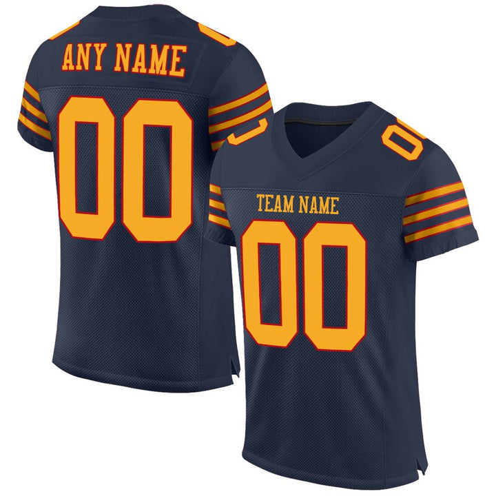 Custom Navy Gold-Red Mesh Authentic Football Jersey