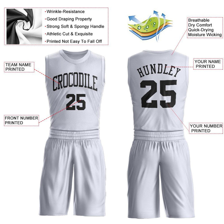 Custom White Black Round Neck Suit Basketball Jersey