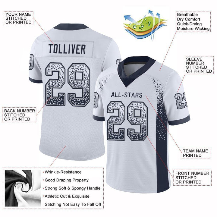 Custom White Navy-Light Gray Drift Fashion Football Jersey