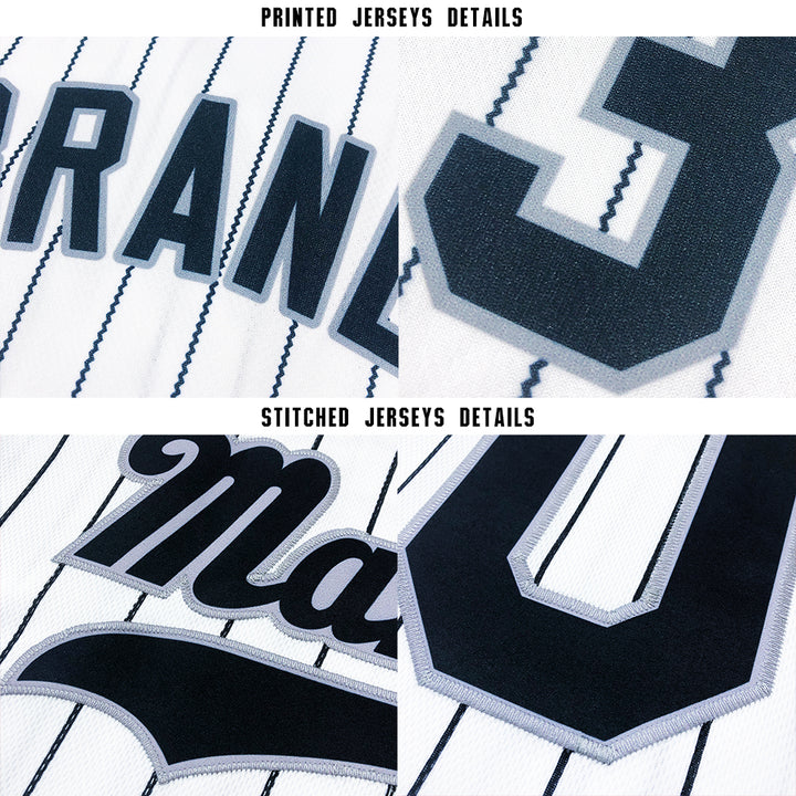 Custom White Royal Pinstripe Navy-Gold Baseball Jersey