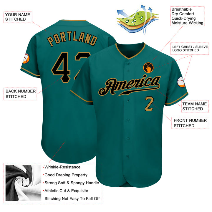 Custom Teal Black-Old Gold Authentic Baseball Jersey