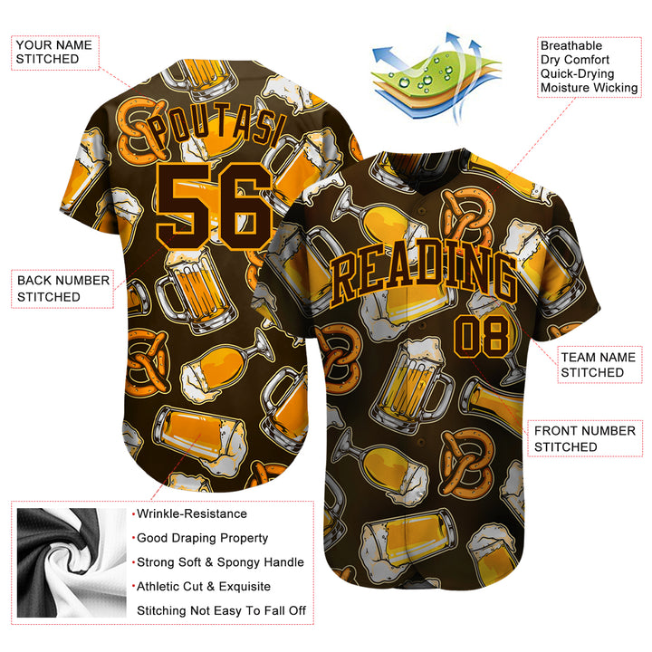 Custom 3D Pattern Design Beer Authentic Baseball Jersey