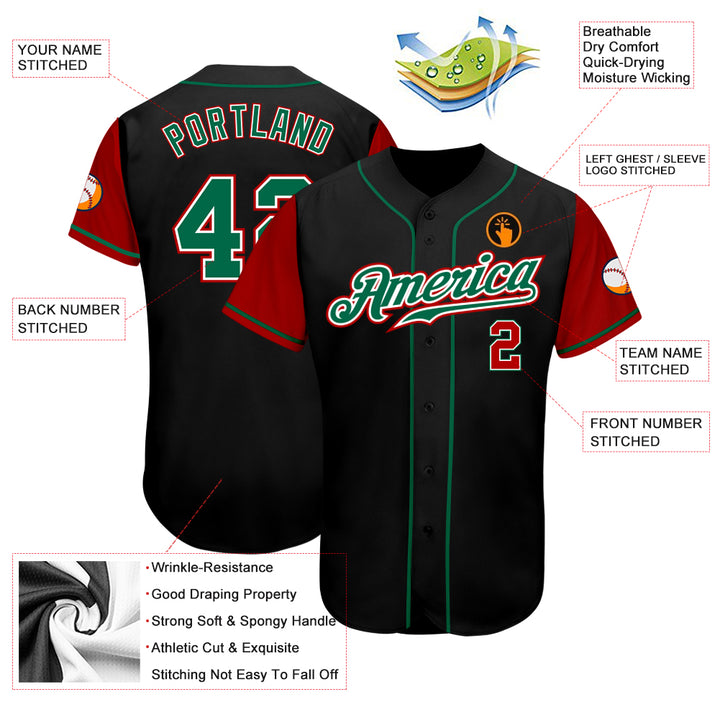 Custom Black Kelly Green-Red Authentic Two Tone Baseball Jersey