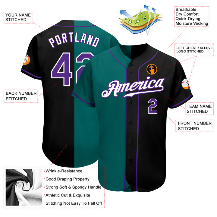 Custom Black Purple-Teal Authentic Split Fashion Baseball Jersey