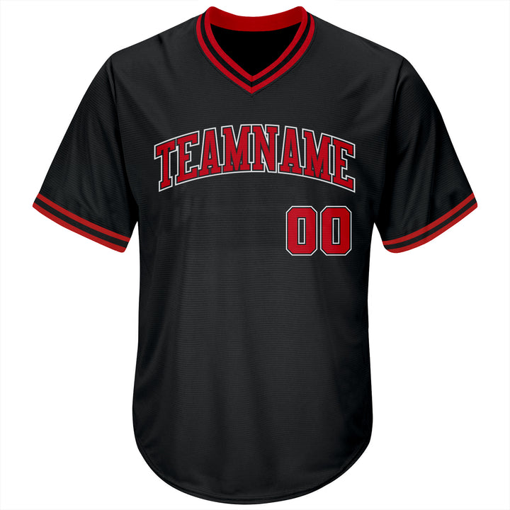 Custom Black Red-White Authentic Throwback Rib-Knit Baseball Jersey Shirt
