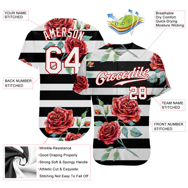 Custom Black White-Red 3D Pattern Design Mandalas Authentic Baseball Jersey