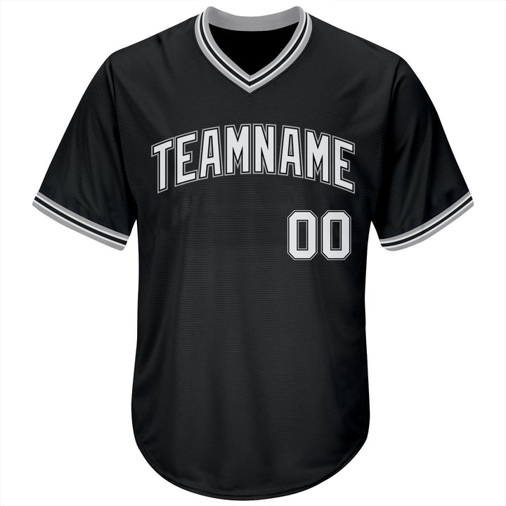 Custom Black White-Gray Authentic Throwback Rib-Knit Baseball Jersey Shirt