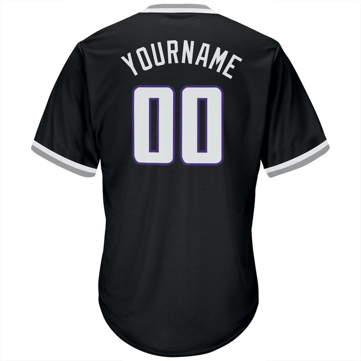 Custom Black White-Purple Authentic Throwback Rib-Knit Baseball Jersey Shirt