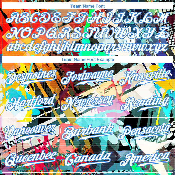Custom Graffiti Colored Abstract Pattern White-Light Blue 3D Authentic Baseball Jersey