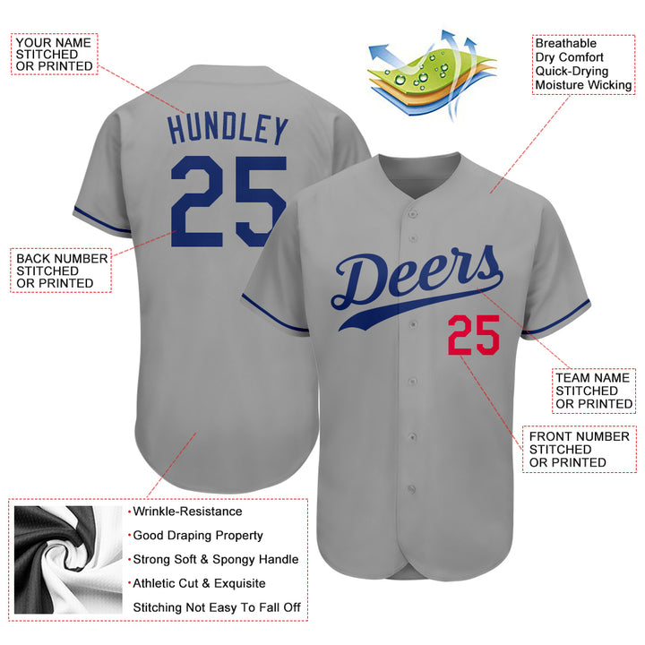 Custom Gray Royal-Red Authentic Baseball Jersey