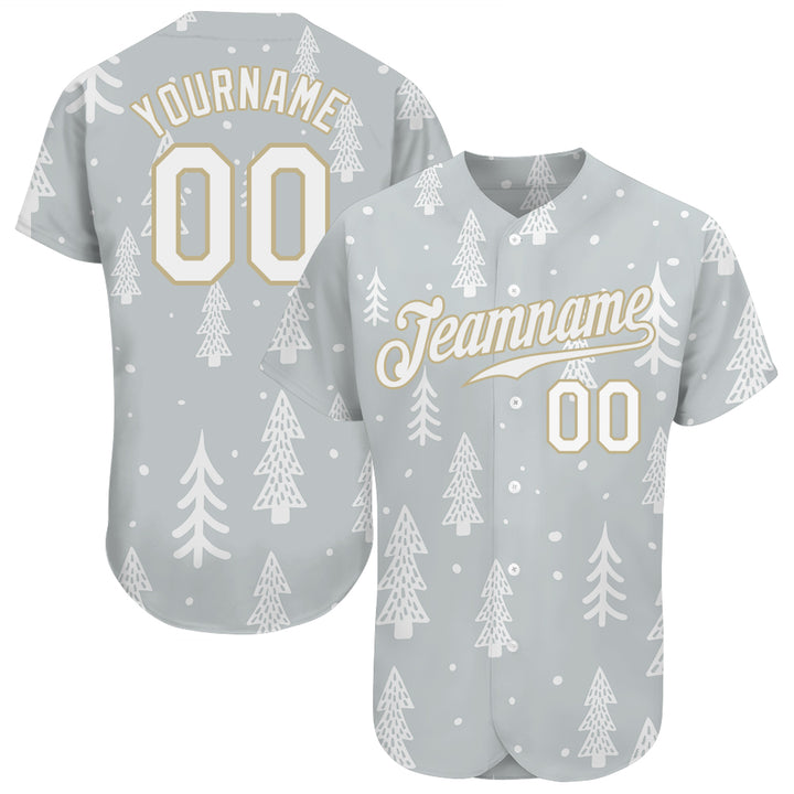 Custom Gray White-Old Gold Christmas 3D Authentic Baseball Jersey