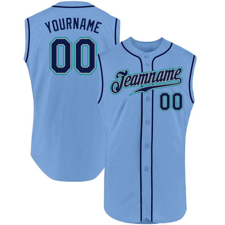 Custom Light Blue Navy-Teal Authentic Sleeveless Baseball Jersey