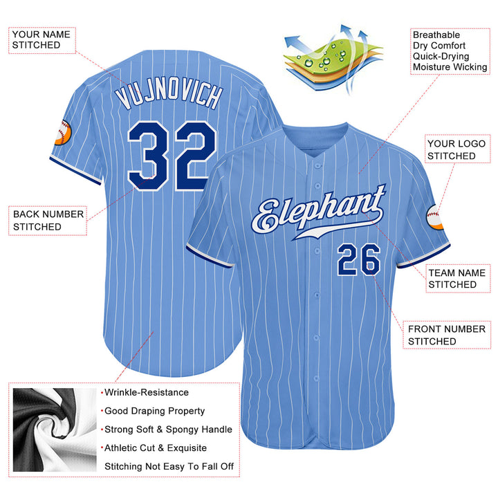 Custom Light Blue White Pinstripe Royal-White Authentic Baseball Jersey