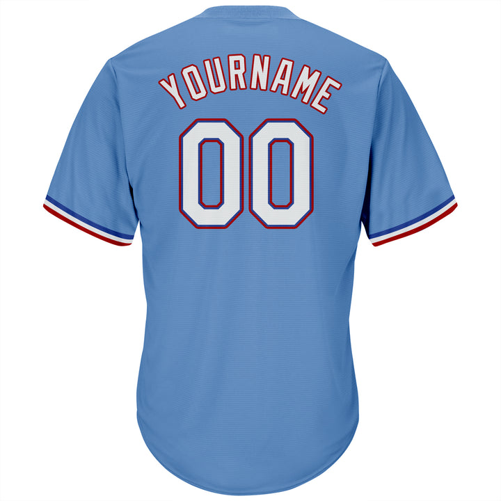 Custom Light Blue White-Red Authentic Throwback Rib-Knit Baseball Jersey Shirt