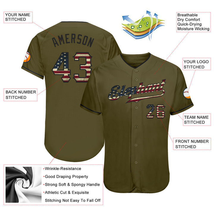 Custom Olive Vintage USA Flag-Black Authentic Salute To Service Baseball Jersey