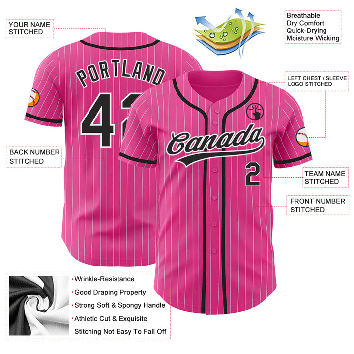 Custom Pink White Pinstripe Black Authentic Baseball Jersey