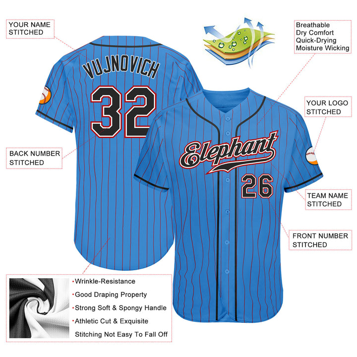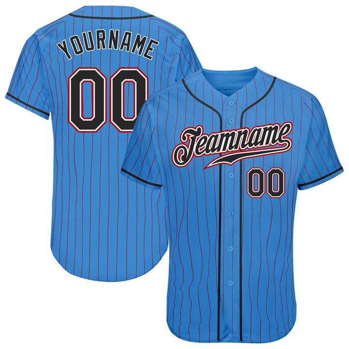 Custom Powder Blue Red Pinstripe Black-White Authentic Baseball Jersey