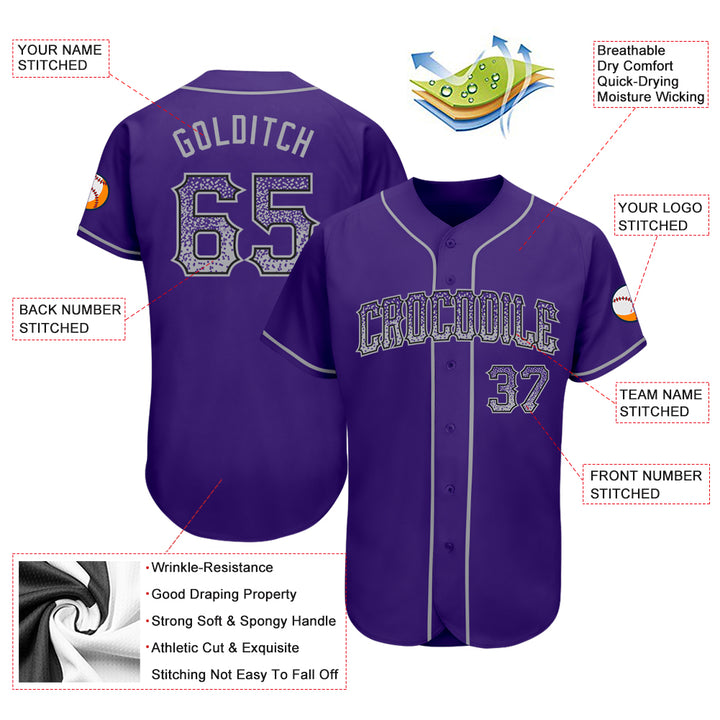 Custom Purple Gray-Black Authentic Drift Fashion Baseball Jersey