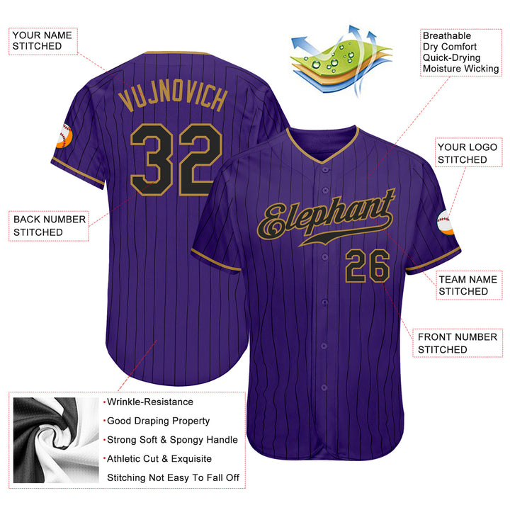 Custom Purple Black Pinstripe Black-Old Gold Authentic Baseball Jersey