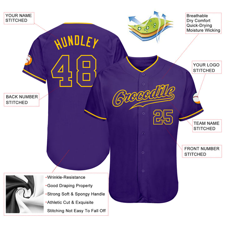 Custom Purple Purple-Gold Authentic Baseball Jersey