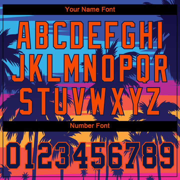 Custom Royal Navy-Orange 3D Pattern Design Palm Trees Authentic Baseball Jersey