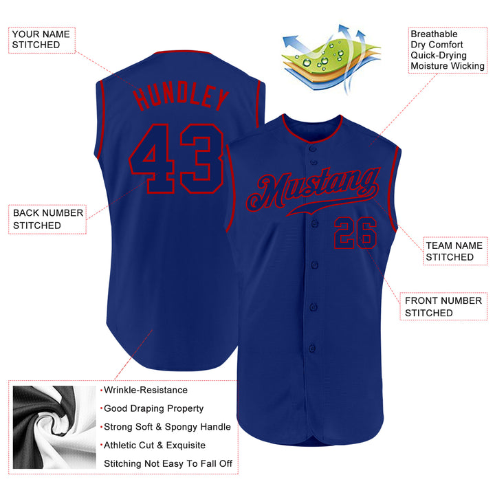 Custom Royal Royal-Red Authentic Sleeveless Baseball Jersey