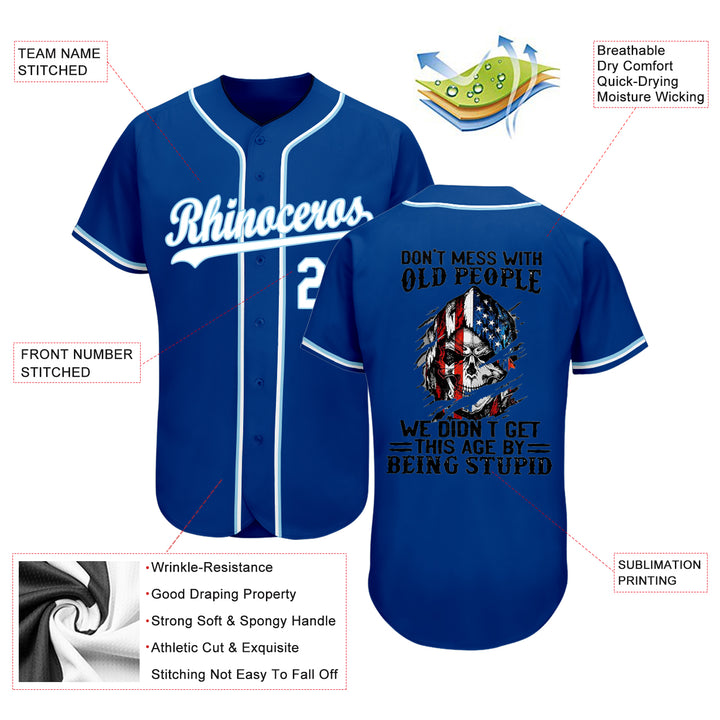Custom 3D Pattern Design Don't Mess With Old People We Didn't Get This Age By Being Stupid Skull American Flag Authentic Baseball Jersey