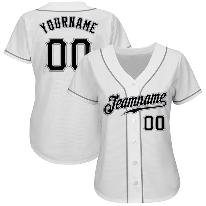 Custom White Black-Gray Authentic Baseball Jersey