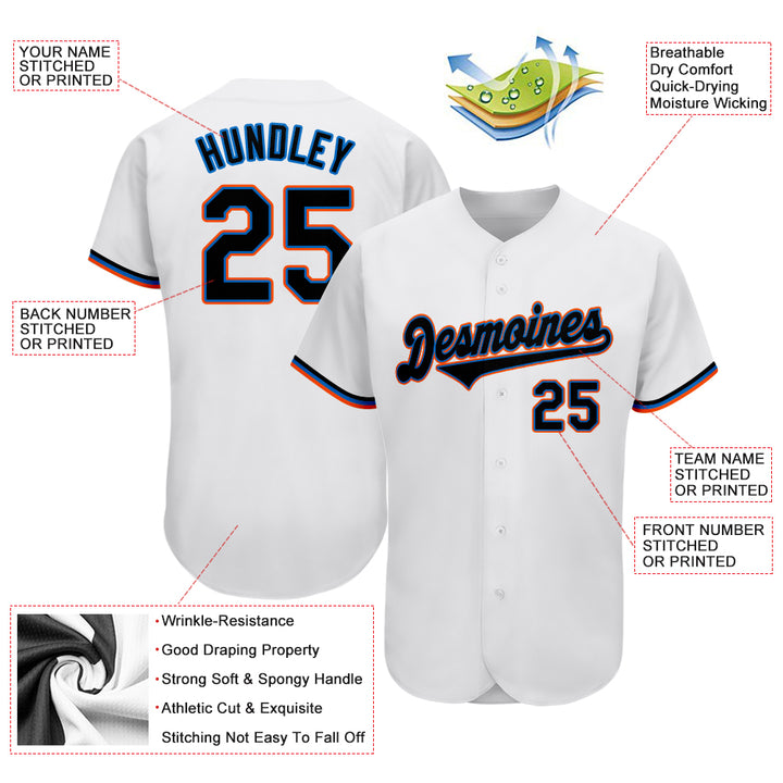 Custom White Black-Powder Blue Authentic Baseball Jersey