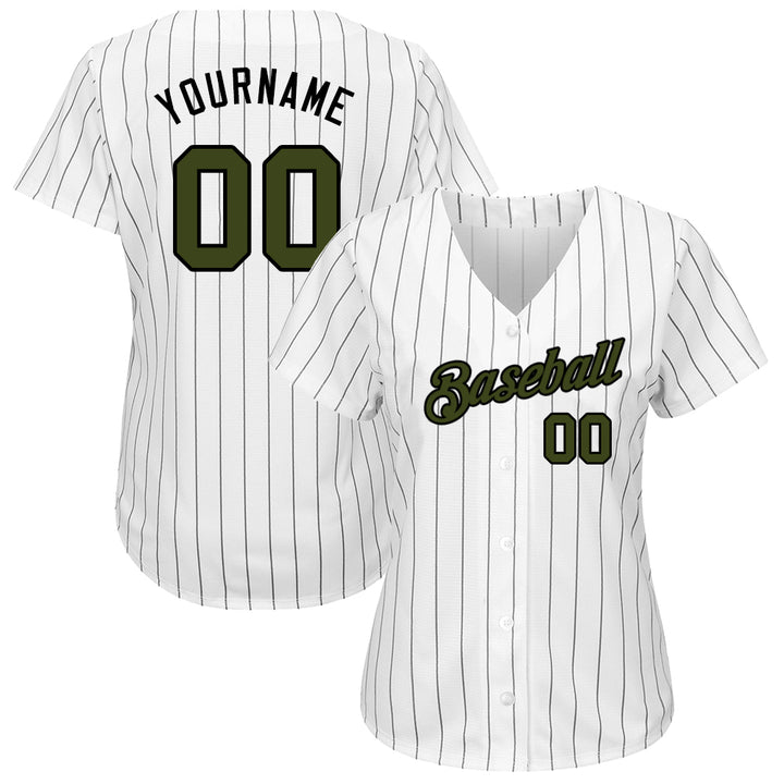 Custom White Black Pinstripe Olive-Black Authentic Memorial Day Baseball Jersey