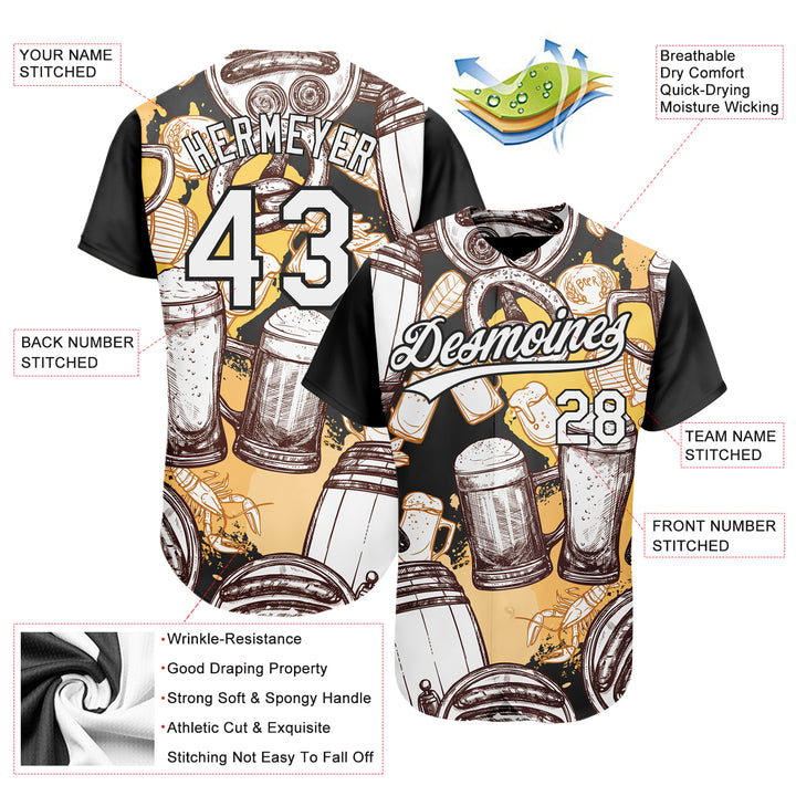 Custom White Black 3D Pattern Design Beer Festival Authentic Baseball Jersey