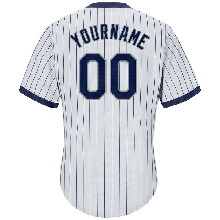 Custom White Navy Pinstripe Navy-Gray Authentic Throwback Rib-Knit Baseball Jersey Shirt