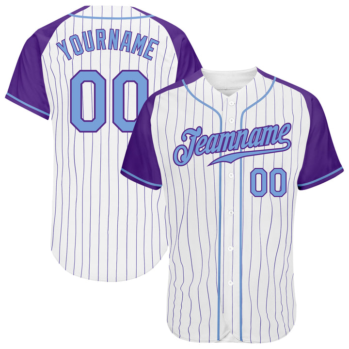 Custom White Purple Pinstripe Light Blue-Purple Authentic Raglan Sleeves Baseball Jersey