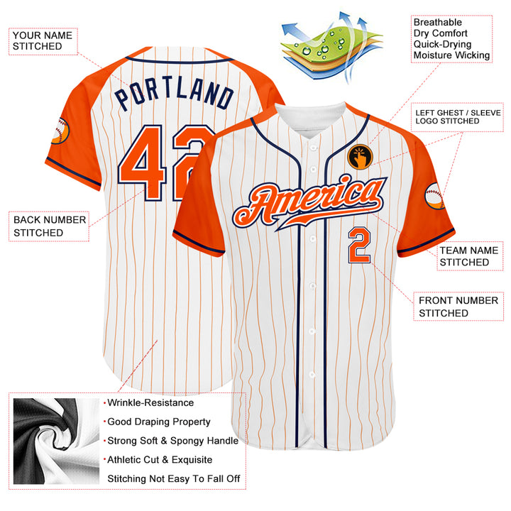Custom White Orange Pinstripe Orange-Navy Authentic Raglan Sleeves Baseball Jersey