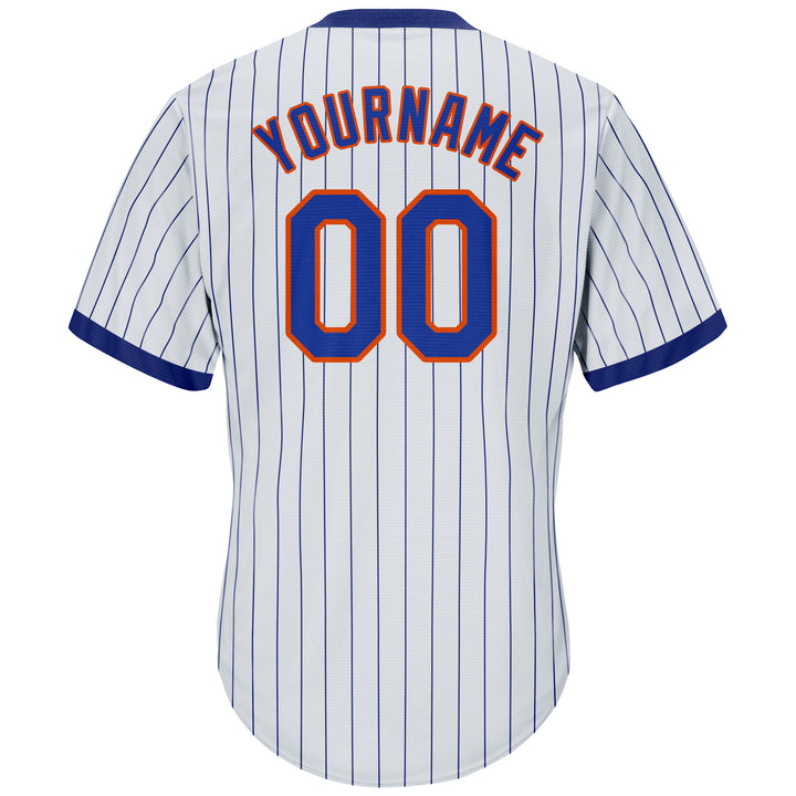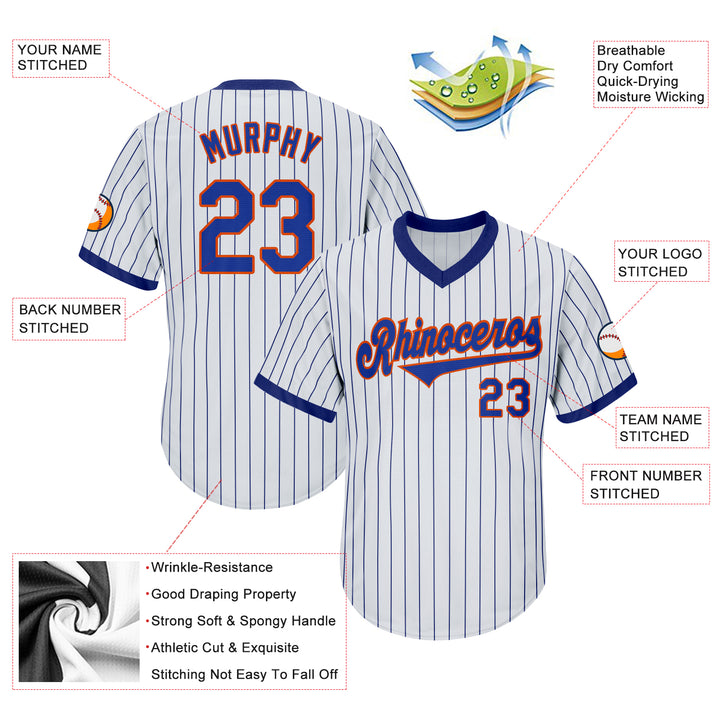 Custom White Royal Pinstripe Royal-Orange Authentic Throwback Rib-Knit Baseball Jersey Shirt