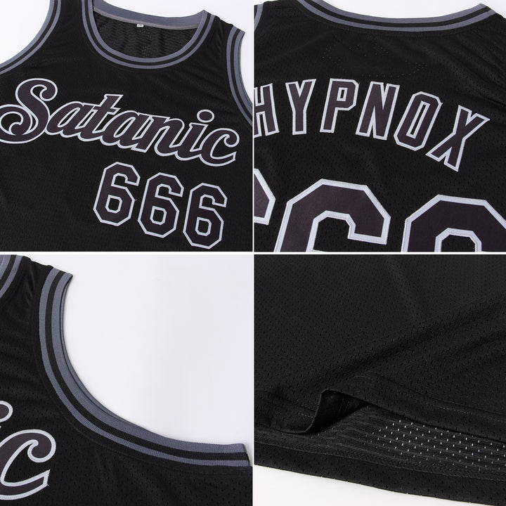 Custom Black Black-Gray Authentic Throwback Basketball Jersey