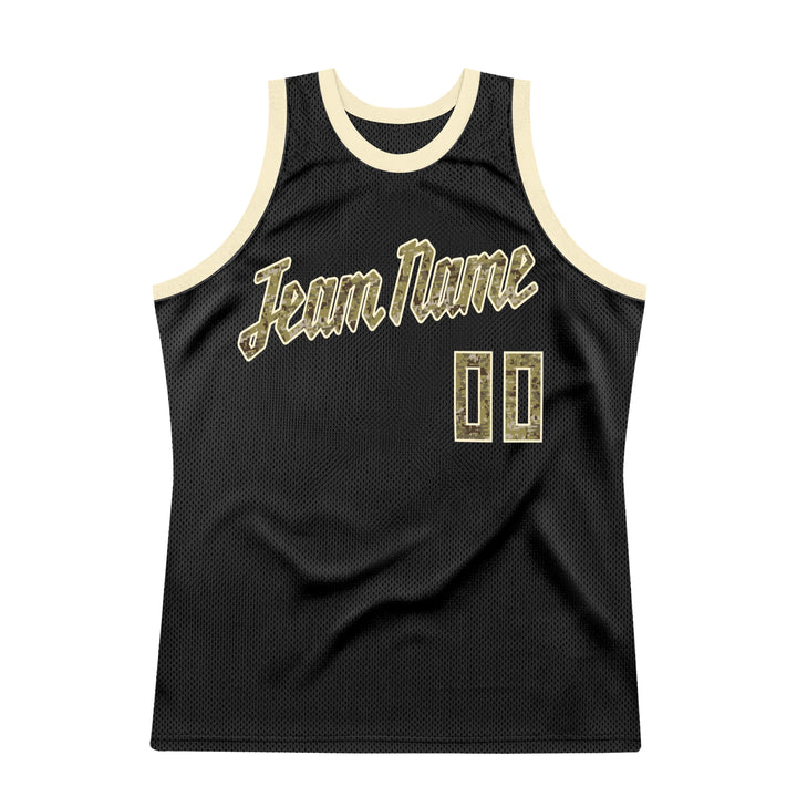 Custom Black Camo-Cream Authentic Throwback Basketball Jersey