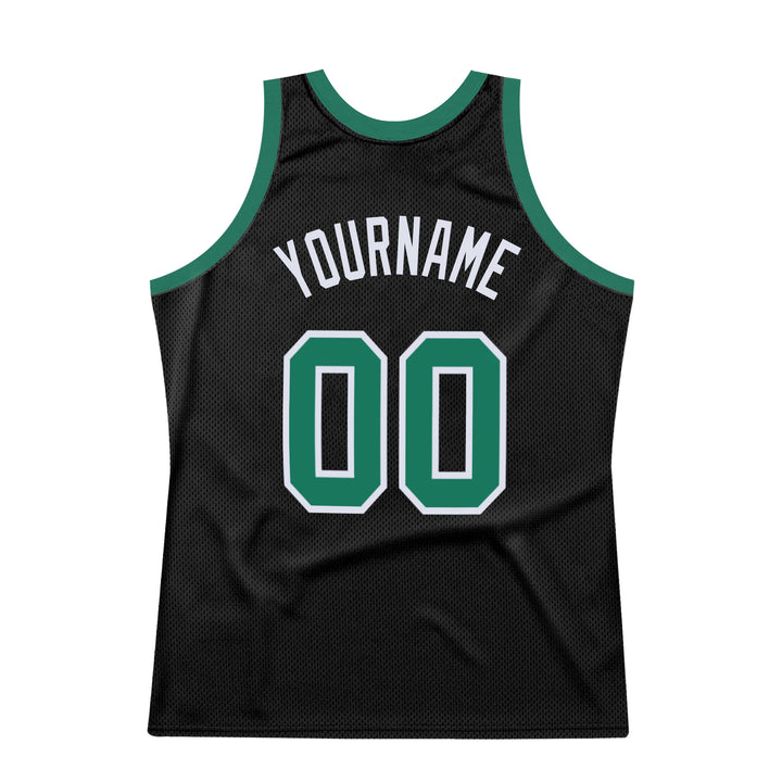 Custom Black Kelly Green-White Authentic Throwback Basketball Jersey