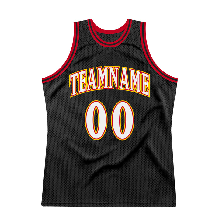 Custom Black White-Red Authentic Throwback Basketball Jersey