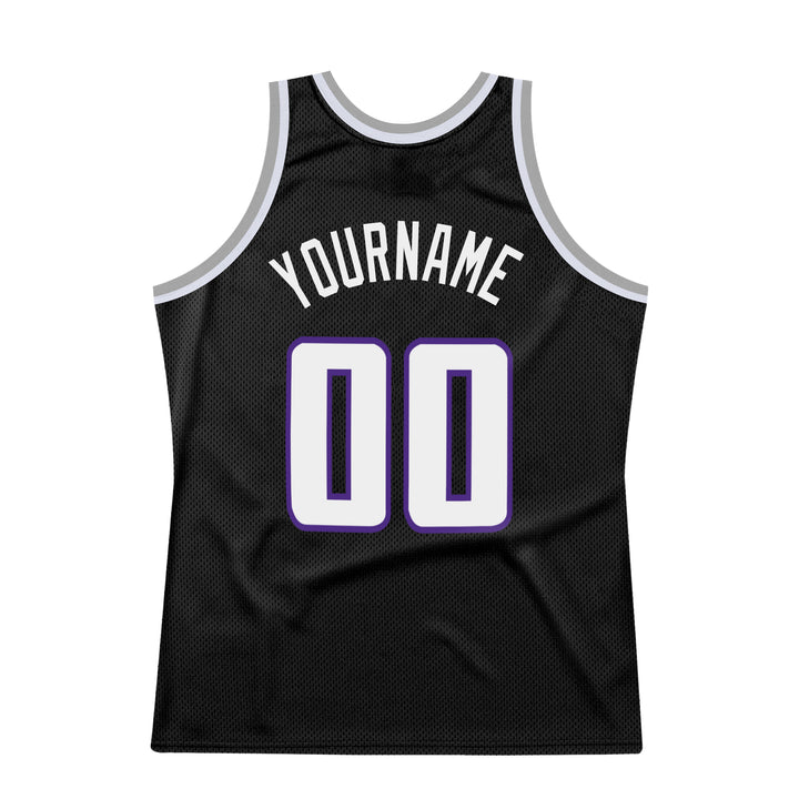 Custom Black White-Purple Authentic Throwback Basketball Jersey