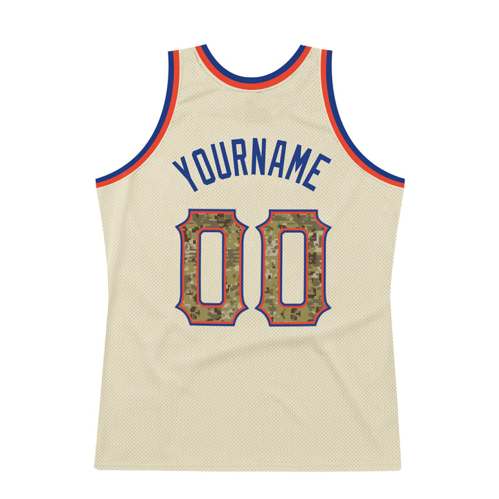 Custom Cream Camo-Royal Authentic Throwback Basketball Jersey