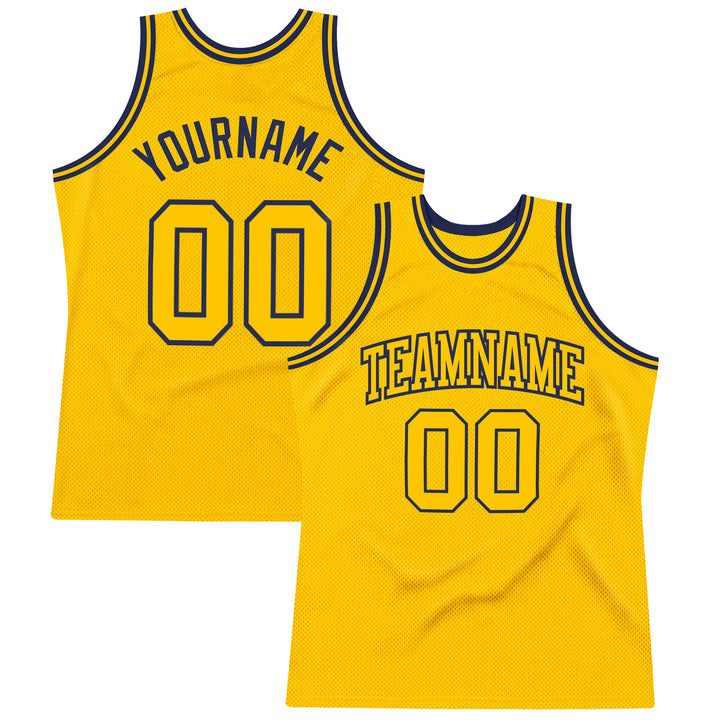 Custom Gold Gold-Navy Authentic Throwback Basketball Jersey