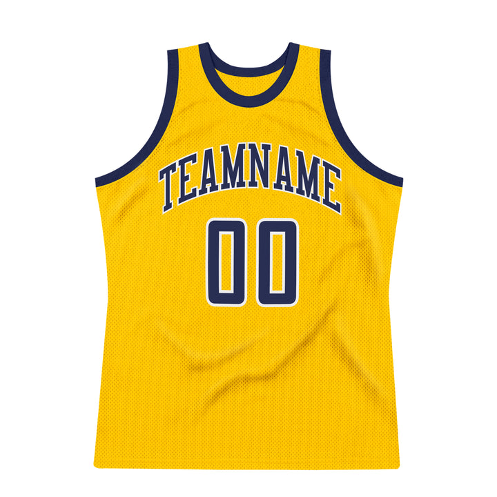 Custom Gold Navy-White Authentic Throwback Basketball Jersey