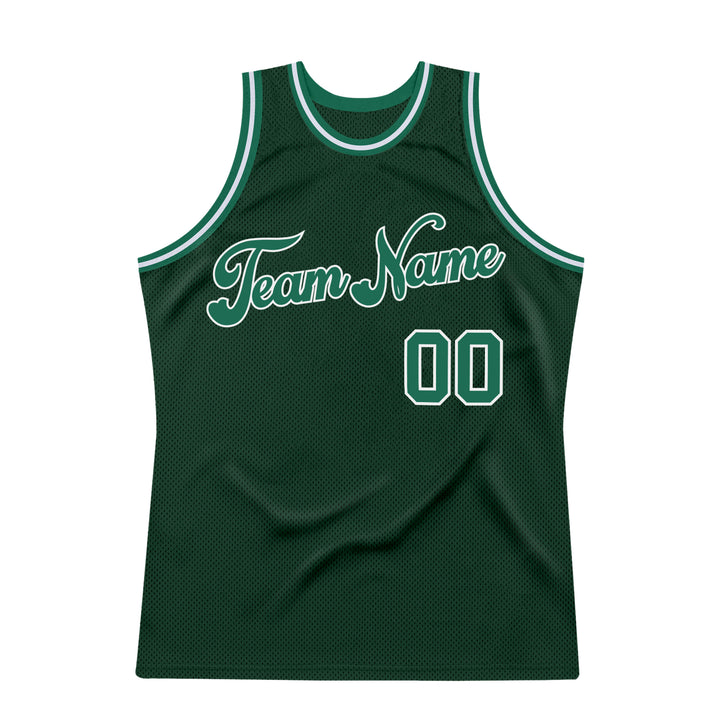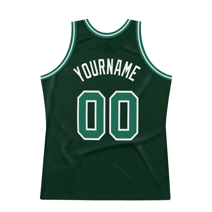 Custom Hunter Green Kelly Green-White Authentic Throwback Basketball Jersey