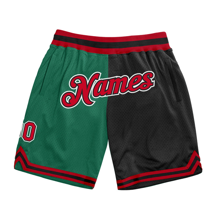 Custom Kelly Green Red-Black Authentic Throwback Split Fashion Basketball Shorts