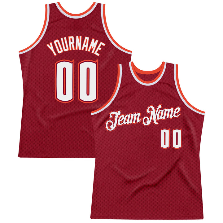 Custom Maroon White-Orange Authentic Throwback Basketball Jersey