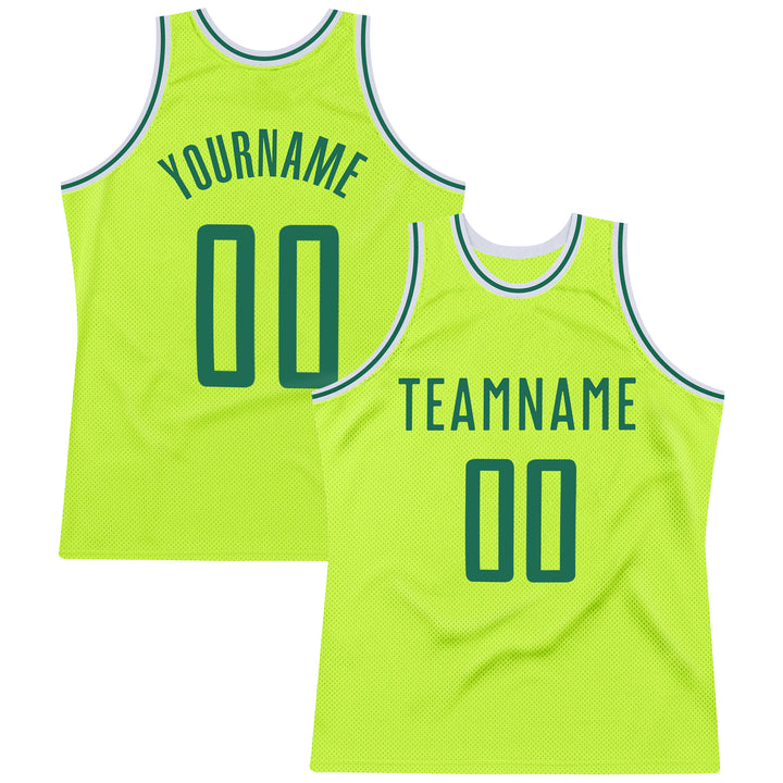 Custom Neon Green Kelly Green-White Authentic Throwback Basketball Jersey