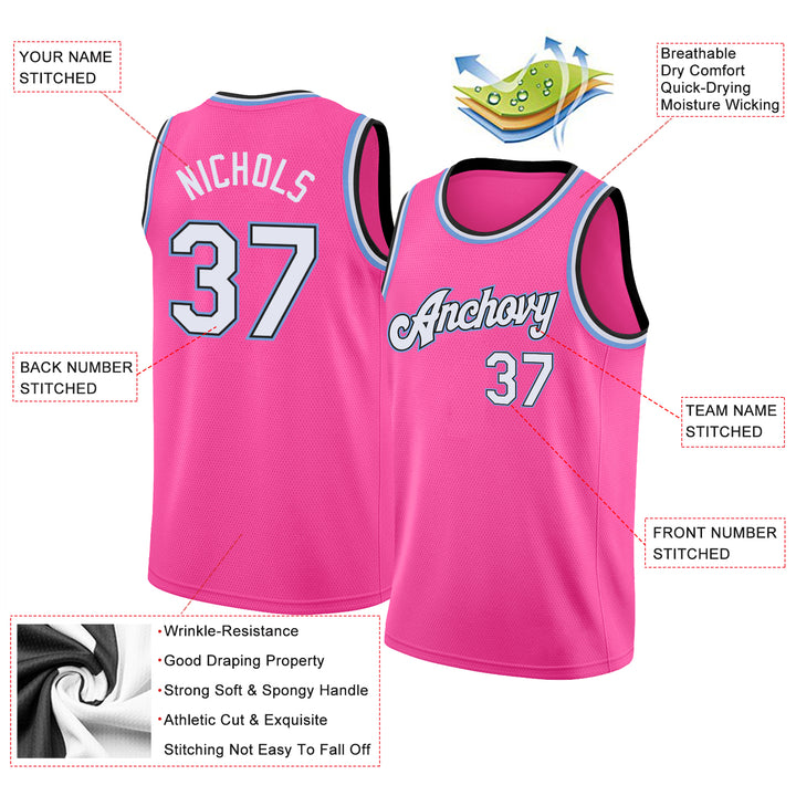 Custom Pink White-Light Blue Round Neck Rib-Knit Basketball Jersey
