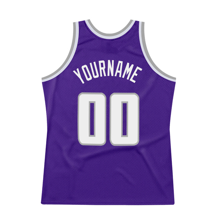 Custom Purple White-Gray Authentic Throwback Basketball Jersey