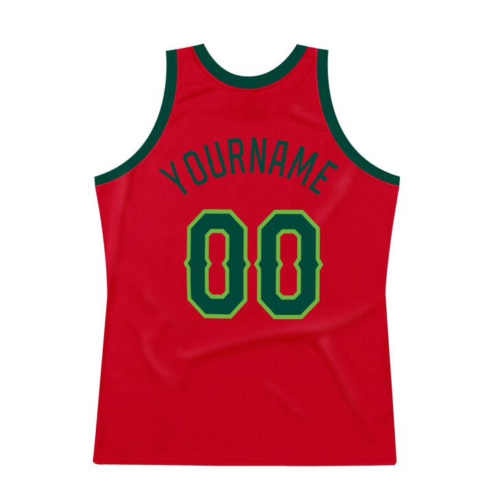 Custom Red Hunter Green-Neon Green Authentic Throwback Basketball Jersey